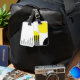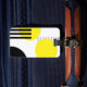 abstract illustration with geometrical (circles and stripes) shapes decoration in yellow and black colors on white background.