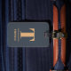 Elégant design entièrement personnalisable étiquette de bagages avec arrière - plan bleu profond, brun gras monogramme.