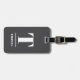 Elégant design entièrement personnalisable étiquette de bagages avec arrière - plan gris foncé, blanc gras monogramme.