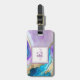 Étiquette À Bagage Cool Violet bleu Marbre Texture, Monogramme
