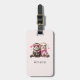 Une étiquette de bagage avec une jolie illustration. Une paire de loutres en vêtements rose. Portant des chemises rayées, l'une portant une cravate et l'autre portant un arc. Entouré de coeurs d'amour.