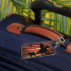 Bagage de cowboy super cool avec une atmosphère rustique, un peu vintage aussi, avec vieux rouge blanc et bleu dans l'arrière - plan et un gouvernail qu'il a fait au premier plan. Un grand cadeau pour le cow-boy, le rodéo ou tout autre amateur de l'Ouest ancien.