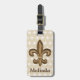 Marque de bagage française fleur de lis avec votre nom personnalisé en marron foncé.