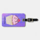 Balise bagage personnalisée avec un nom et une adresse. Conçu avec l'illustration d'un cupcake à l'allure délicieuse. Le gel rose et les gouttelettes de chocolat. Porte-cupcake jaune et framboise sur le dessus. Yummy ! L'arrière - plan est une texture abstraite violette avec de petits coeurs parsemés autour.