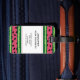 Une étiquette de bagage avec un motif de pastèque mignon. Croûte verte en couches de rayures avec une couche de rayures roses avec des graines noires à l'intérieur. Amusement et design estival. Un rectangle superposé avec votre texte à l'intérieur.