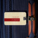 Voyagez dans le style avec cette étiquette décontractée de bagage beige grunge chic avec une bande rouge foncé classique moderne où vous pouvez ajouter votre nom dans une police design et tendance.