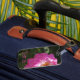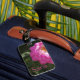 Ne perdez jamais vos bagages avec cette étiquette de bagage facile à repérer qui présente l'image d'une fleur rose vif sur un arrière - plan vert foncé.