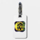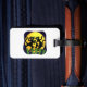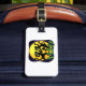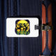 Deux chats noirs assis avec un soleil géant jaune dans l'arrière - plan. Cette conception semble vraiment efficace sur ces étiquettes de bagage