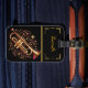 Faites vibrer votre passion pour la musique avec cette étiquette de bagage d'inspiration rock-and-roll Dotée d'une trompette dorée et rose animée entourée de notes musicales, ce design saisissant s'oppose à un arrière - plan noir élégant. Idéal pour les amateurs de musique, cette pièce unique capte l'énergie de la musique live et ajoute une touche artistique audacieuse à votre style.