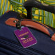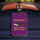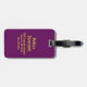 Une étiquette de bagage au design chic illustrée d'une casquette et d'un diplôme de fin d'études. Texte dit : Classe de fin d'études de 2018 (vous pouvez customiser l'année) et le nom du diplômé. Placez-vous sur un joli arrière - plan violet avec des lettres dorées. Simple, moderne et élégant.