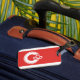 Bagage Tag avec le drapeau de Calgary, la plus grande ville de la province de l'Alberta, Canada. Drapeau rouge et blanc