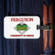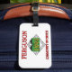 Balise de bagage avec le drapeau de Ferguson, Missouri. Un drapeau blanc avec un texte rouge et une date de fondation de la ville dans un champ vert