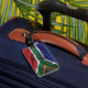 Marque à bagages avec le drapeau de l'Afrique du Sud dans un style de tissu ondulé. Ce design présente les couleurs du drapeau sud-africain et un design avec un bel effet texturé de matériau de tissage. Ce design de drapeau est une excellente façon de vous montrer fier d'être originaire d'Afrique du Sud.