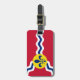 Étiquette de bagage avec le drapeau de la ville de St Louis ; drapeau rouge avec les vagues blanches et de bleu et fleur-De-lys bleu en cercle jaune