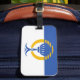 Bagage Tag avec un design avec le drapeau d'Orlando, Floride. Drapeau bleu et blanc design par la Ville d'Orlando et Tim Eggert. Source : https://www.orlando.gov/Our-Government/News-and-Information/City-Official-Assets