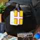Bagage Tag avec design avec un drapeau du comté historique de Dorset, en Angleterre, Grande-Bretagne; drapeau jaune avec croix blanche avec une frontière rouge