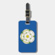 Marque de bagage au design avec un drapeau du comté historique du Yorkshire, en Angleterre, Grande-Bretagne; drapeau avec une rose blanche sur un champ bleu