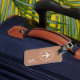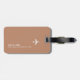 An elegant item with the graphic image of a white airplane in a circle, on terracotta brown background personalized with your name and initials... to identify your belongings.