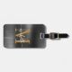 Étiquette de bagage personnalisée élégante moderne stylée fille avec métal noir et monogramme doré, écriture de nom initiale. Ce design présente un prénom dans une jolie calligraphie à queue avec monogramme initial, informations d'adresse en or et blanc sur fond en feuille métallique noire fausse. Celles-ci sont faciles à personnaliser. Cadeau féminin élégant pour un mariage, une douche de mariée, un anniversaire de 16 ans, une remise de diplôme, et pour quiconque aime le style glamour.