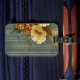 Beau style boho fond rayé en détresse doré et bleu avec un bouquet floral sombre et élégant en haut