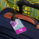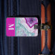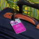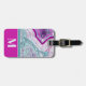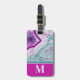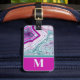 Élégant Turquoise Magenta Pierre Monogramme Initial Bagage Tag. Les cristaux d'agate et les géodes continuent d'être une tendance préférée! Cette impression présente et une image rapprochée d'une pierre de géode turquoise et violette (magenta), avec des petits cristaux et des bandes blanches. Accentué par un blocage coloré dynamique pour lui donner un look moderne et tendance. Ajoutez votre initiale pour en faire la vôtre.