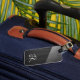 Étiquette À Bagage Élégant bleu et or Parties scintillant Monogramme
