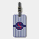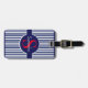 Étiquette À Bagage Élégant bleu marine rouge rayé monogramme initial