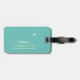 Un joli bagage turquoise couleur claire et personnalisée avec la carte du monde et un avion