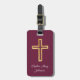 Balise de bagage personnalisées Elégante Religieuse Croix Rouge Bourgogne Script.