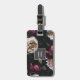 Étiquette À Bagage Élégant floral foncé sur noir | Monogramme