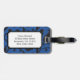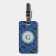 Étiquette À Bagage Élégant modèle floral bleu girly monogramme