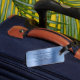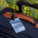 Élégante étiquette de bagage en métal brossé monogrammé bleu