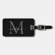 Étiquette À Bagage Élégant noir blanc Monogramme Nom de script élégan