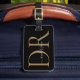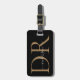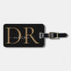 Étiquette À Bagage Élégant Noir Monogramme Or Nom de script élégant