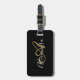Étiquette À Bagage Élégant Noir Monogramme Or Nom de script élégant