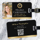 Montrez votre marque lors de voyages et lors d'événements avec cette étiquette élégante. Un design élégant avec un stylo plume et un symbole en forme de sceau. Ce modèle est personnalisé avec votre photo d'identité, nom, informations de service, coordonnées et code QR. Un excellent moyen de promouvoir votre activité notariale ! Parfait pour un notaire public, un agent de signature de prêt, un agent de livraison certifié de fiducie de notaire, l'ACNT, un notaire mobile, un appostille ou toute autre profession juridique. Couleurs imprimées : éléments de couleur noir, blanc et or. Magasinez la collection en ligne pour des idées et des fournitures de produits plus populaires, conçus pour les notaires!