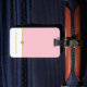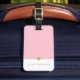 Cette élégante étiquette à bagages présente des couleurs roses et blanches avec séparateur or. Mettez votre nom sur le devant et vos coordonnées sur le côté arrière de cette balise.