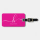 Étiquette À Bagage Elegant Pink White Monogram Initial Script Name