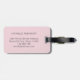Étiquette de bagage personnalisée élégante moderne et féminine avec monogramme et nom en écriture manuscrite rose blush. Ce design présente un prénom dans une jolie police à queue avec monogramme initial, informations d'adresse en blanc et noir sur fond couleur rose blush. Celles-ci sont faciles à personnaliser. Cadeau féminin élégant pour un mariage, une douche de mariée, un anniversaire de 16 ans, une remise de diplôme, et pour quiconque aime le style glamour.