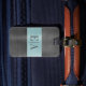 Un monogramme en métal brossé bleu et gris décore cette étiquette de bagage Ce design élégant, élégant et moderne mettra en valeur vos bagages. Conçu pour vous par Blackberry Boulevard.