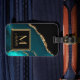 Étiquette À Bagage Élégant Turquoise Noir Monogramme Or Nom initial