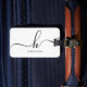 Étiquette À Bagage Elegant White Black Monogram Initial Script Name