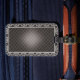 Drapez votre maison avec élégance avec cette étiquette de bagage personnalisée luxueuse. Le design se compose d'une palette de gris et de blanc monochrome sophistiquée, encadrée par une bordure de défilement ornée de style baroque ou damassé. Le champ central a une texture motif en diamant délicate et sophistiquée qui ajoute profondeur et intérêt visuel.
