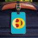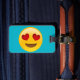 Conception drôle d'Emoji. Visage jaune avec les yeux rouges de coeur. Ajoutez votre propre texte. Changez la couleur d'arrière - plan en votre préférée.