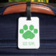 Empreintes de pattes de chiens caricaturaux en vert. Balises de bagages personnalisées. Modifier le nom pour customiser l'idée cadeau pour les amoureux de les chiens.