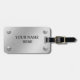Une étiquette personnalisable de bagage avec un effet en aluminium balayé et des vis.