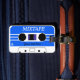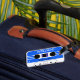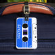 Une étiquette faite sur commande de bagage comportant une image d'un mixtape bleu qui peut être customisé des deux côtés avec votre propre texte !