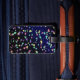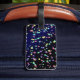 Cette étiquette de bagage sera un hors concours sur le carrousel de bagages avec la couleur foncée d'arrière - plan et les étoiles multicolores. Ce sera un joli accessoire pour vos sacs de voyage. Ils font également un cadeau gentil pour des voyageurs.
