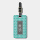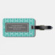 Étiquette faite sur commande élégante et chic de bagage de monogramme dans le motif vintage contemporain de damassé florale classique de bleu de paon de turquoise, grise et blanche. Personnaliser avec vos initiales et votre information de contact.