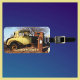 Cette étiquette personnalisée de bagage est décorée de notre photographie originale d'une vieille voiture jaune vintage de coupé. Facile de personnaliser le dos d'information de contact dessus. Tous droits réservés © Alan 2019 et Marcia Socolik.